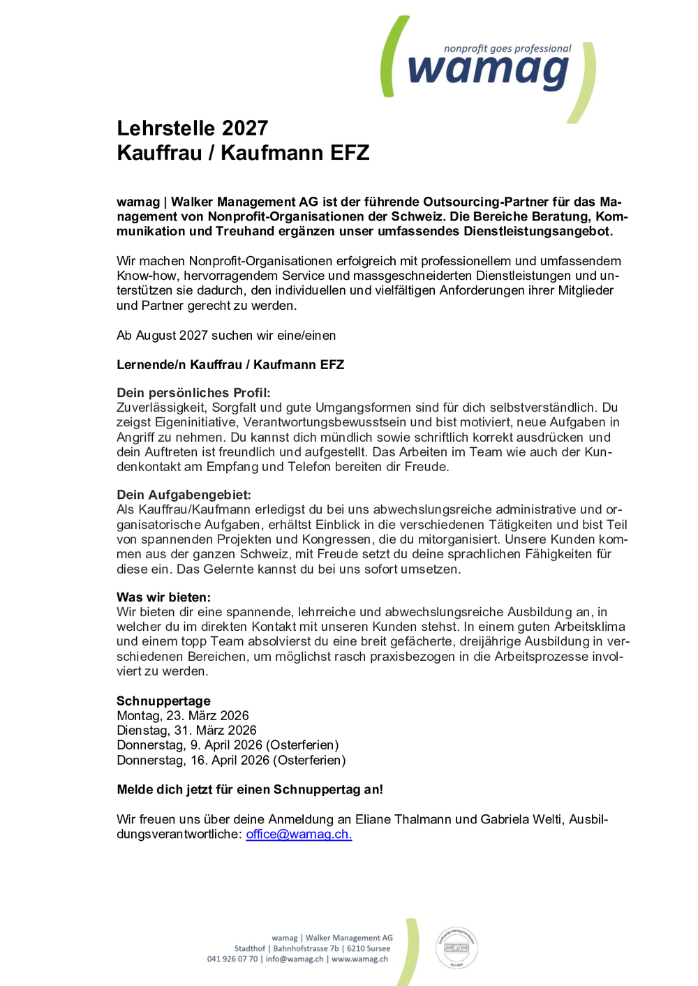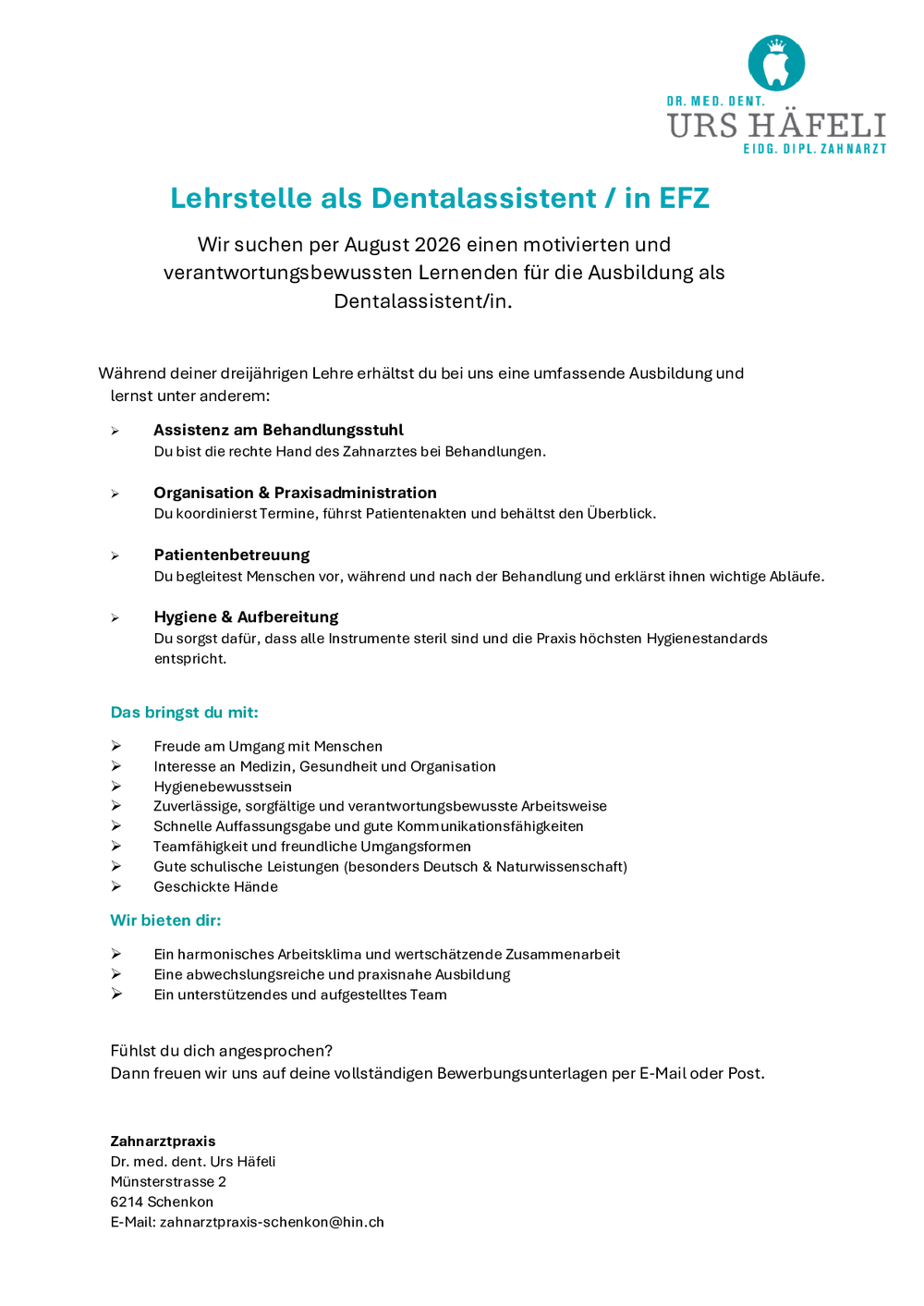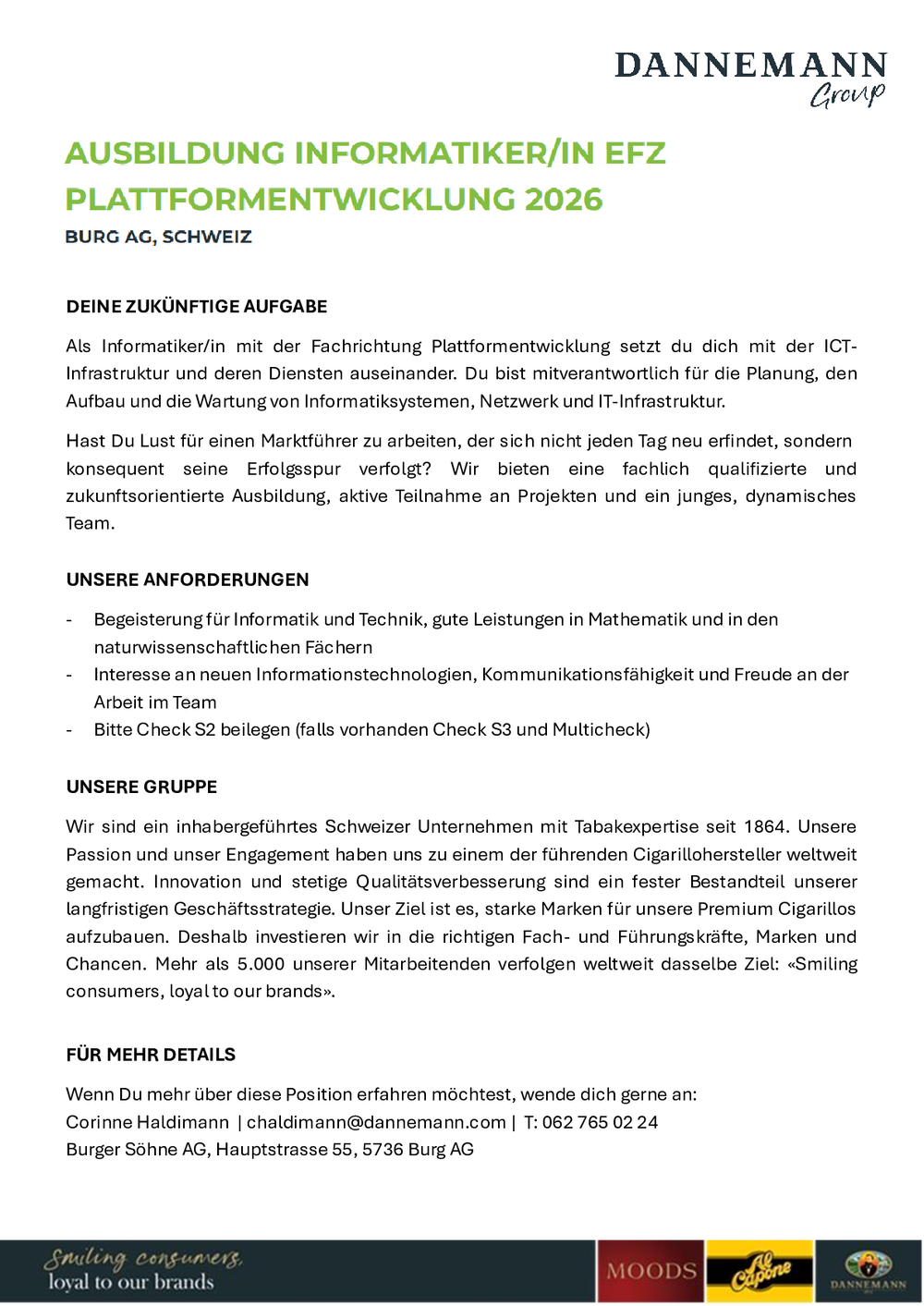 Bieten Sie Schnupperlehren an? Haben Sie eine Lehrstelle oder möchten Sie auf ihre Infoveranstaltung aufmerksam machen?