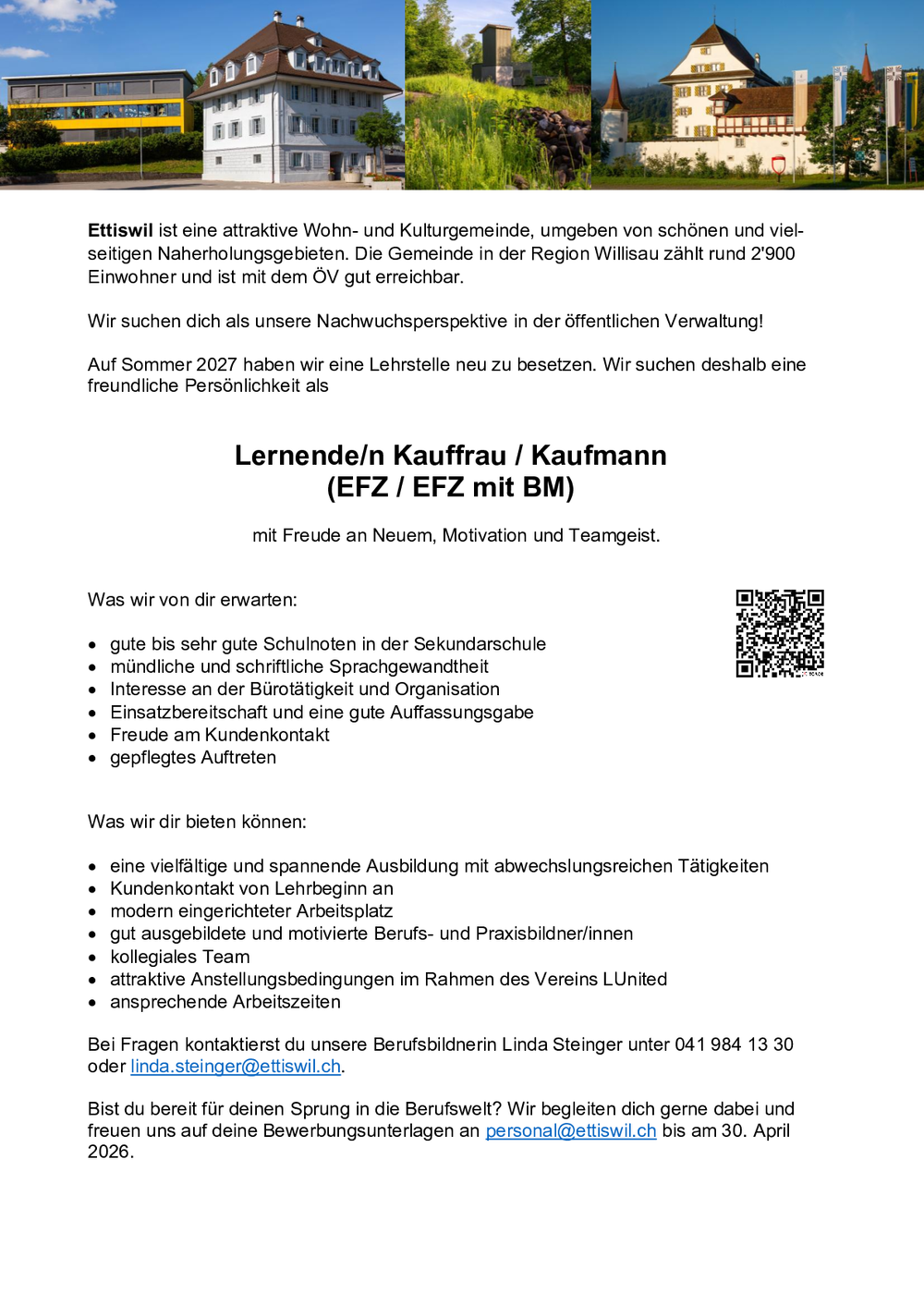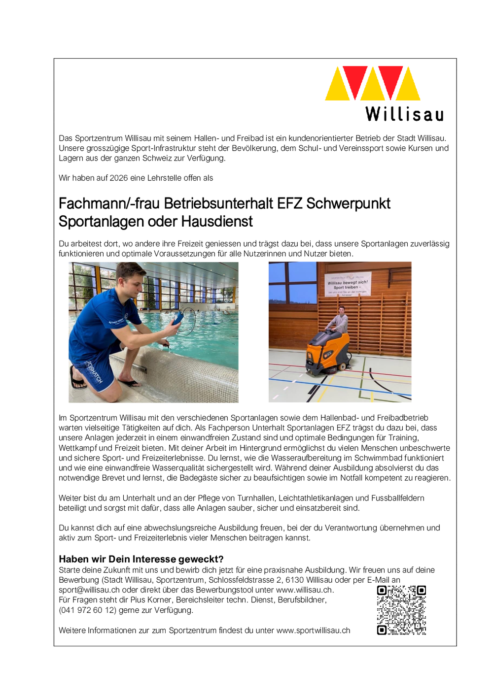 Bei Fragen zur Lehrstelle dürfen Sie sich gerne an die Klassenlehrperson wenden.