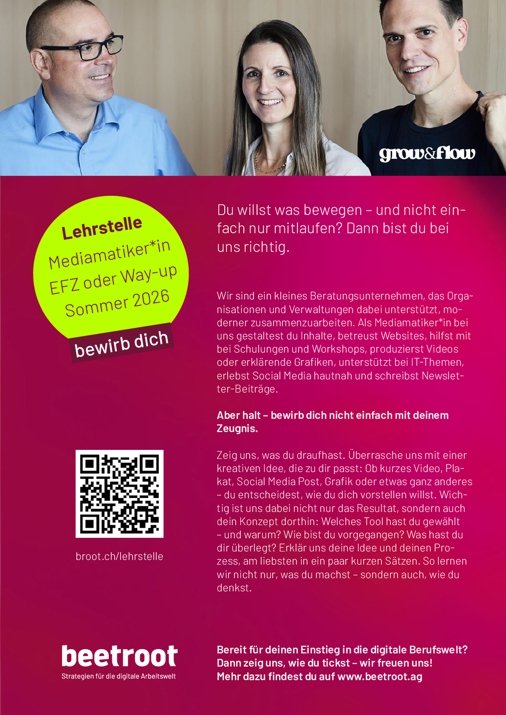 Bieten Sie Schnupperlehren an? Haben Sie eine Lehrstelle oder möchten Sie auf ihre Infoveranstaltung aufmerksam machen?