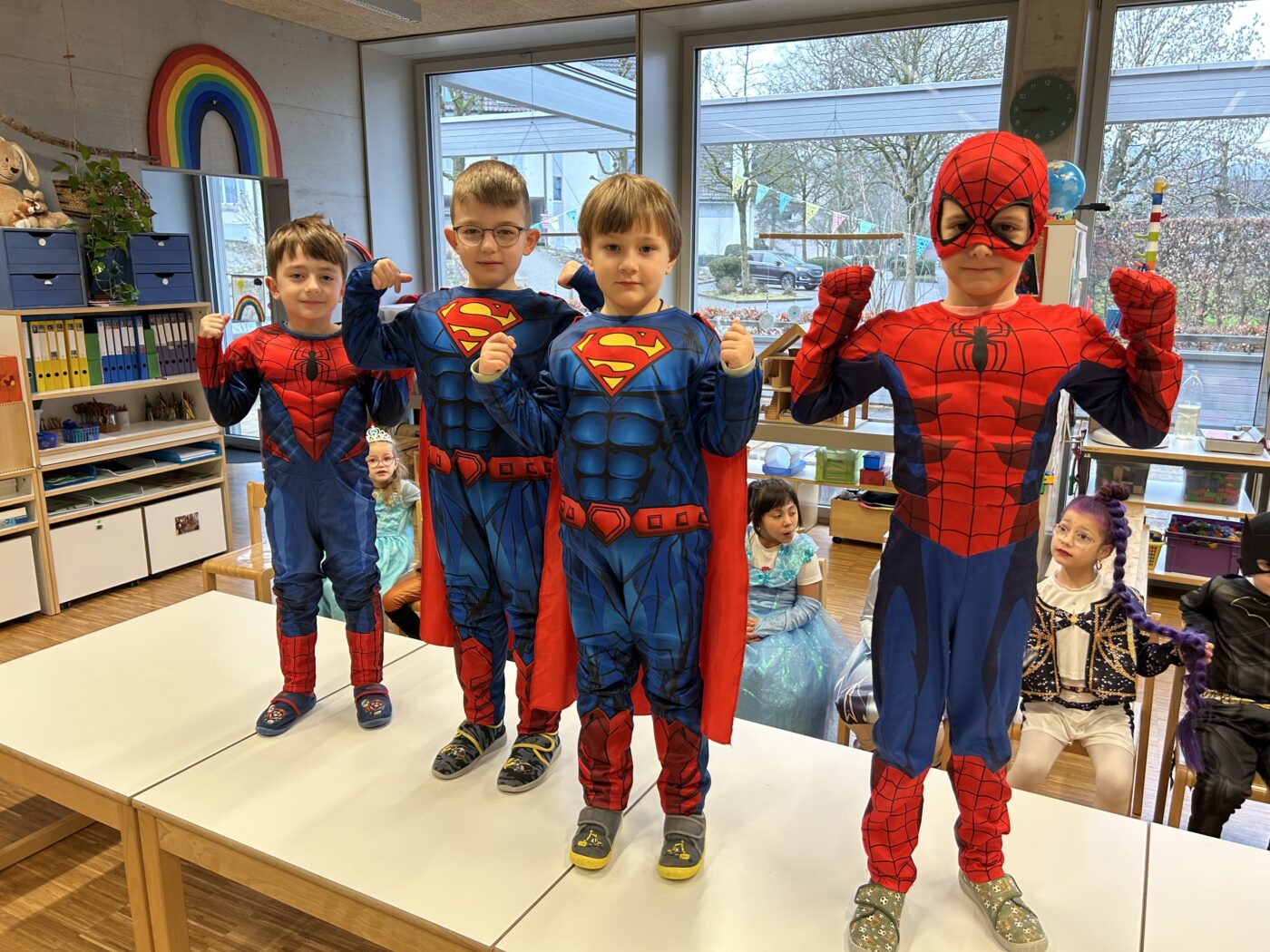 Die Fasnacht brachte bunte Farben, schöne Kostüme und eine besondere Stimmung in den Kindergarten. Prinzessinnen, Feen, Tiere, Superhelden und viele weitere kreative Verkleidungen waren zu entdecken. Die Kinder freuten sich sehr auf diesen speziellen Tag.