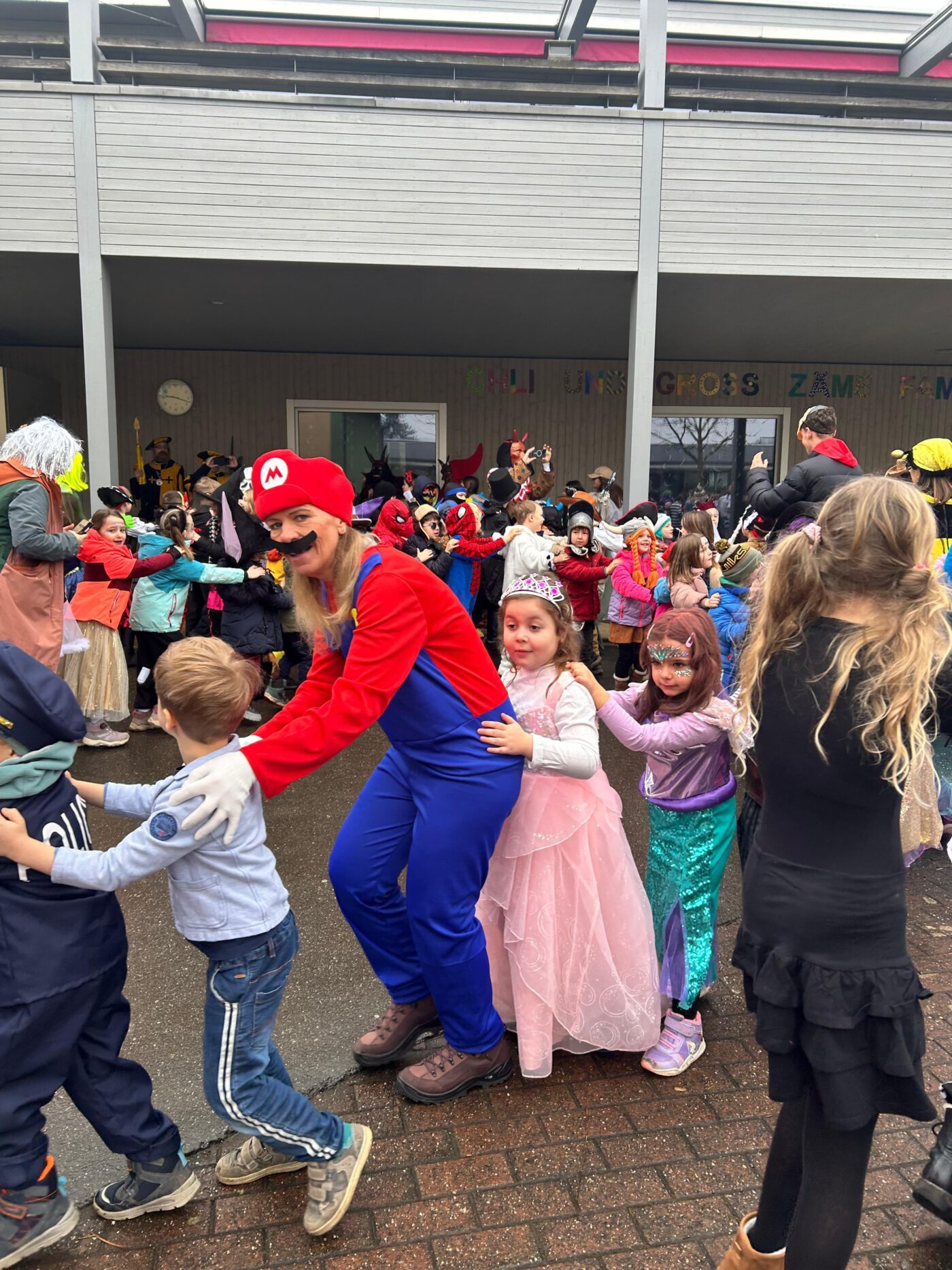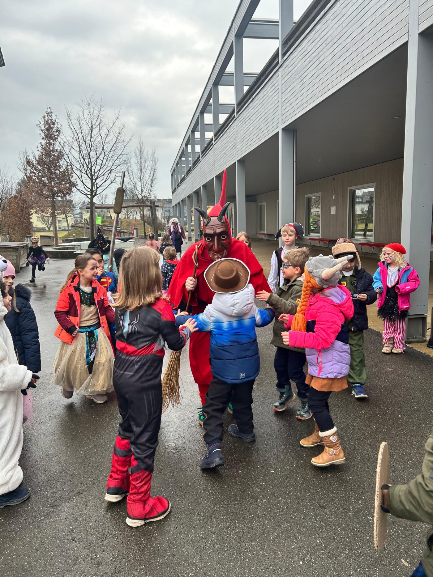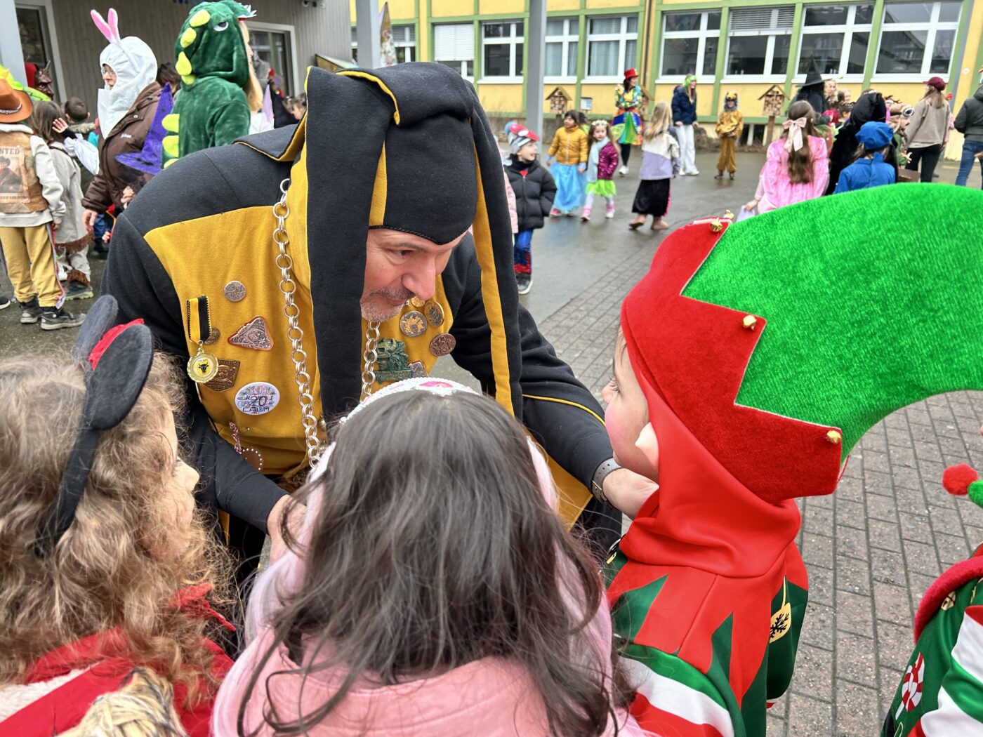 Feen, Elfen und Superhelden verzauberten den Schulhausplatz. Bunter hätte der letzte Morgen vor den Fasnachtsferien kaum sein können: Die Schule Neufeld stand ganz im Zeichen der fünften Jahreszeit – und durfte sich über ganz besonderen Besuch freuen.