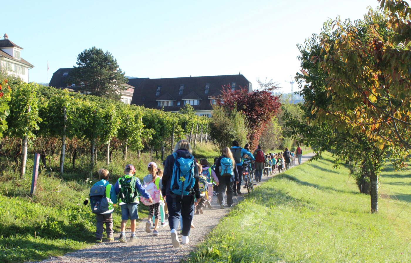Von Weitem konnte man das fröhliche Stimmengewirr der Kinder hören. Für einen kurzen Moment brauchten auch einige Autofahrer Geduld, bis der lange „Tatzelwurm“ die Strasse überquert hatte.