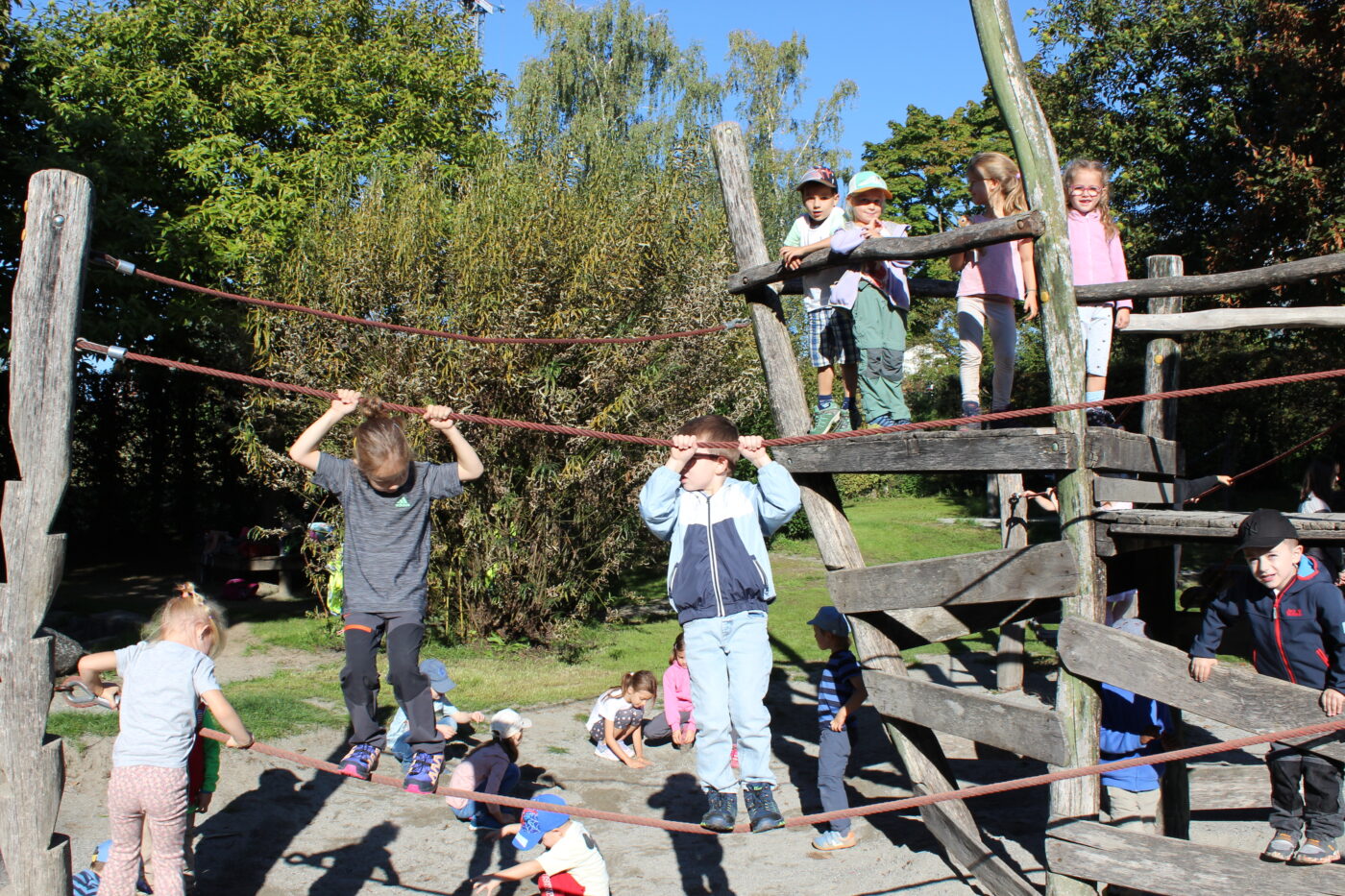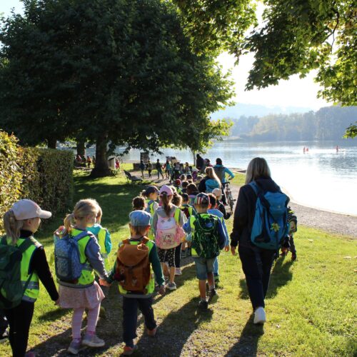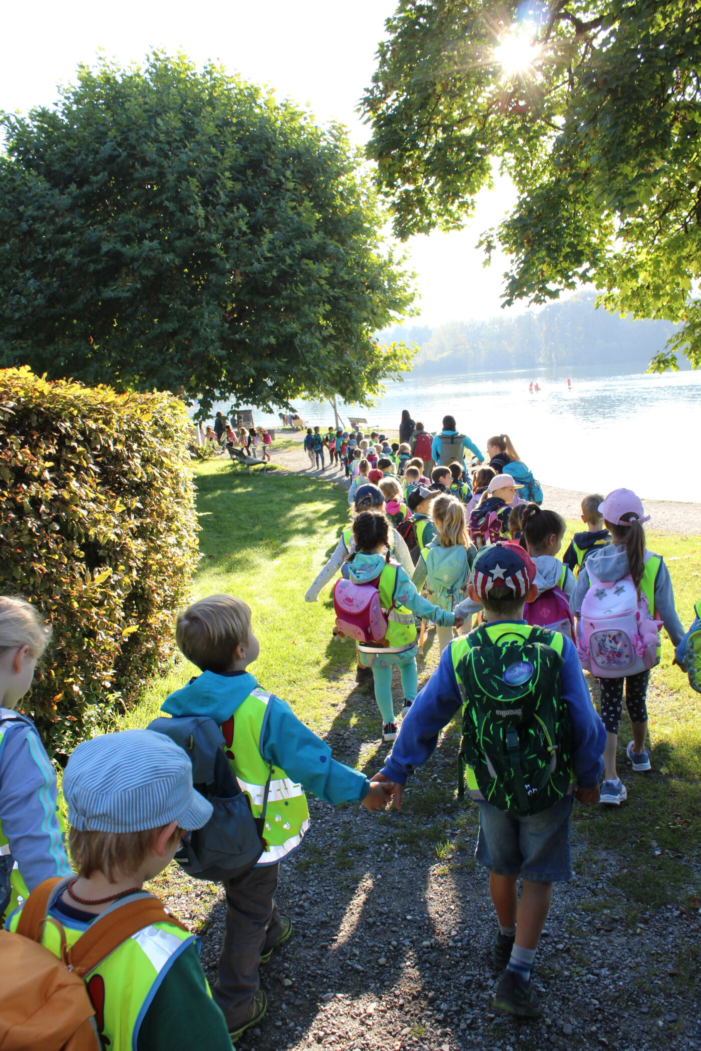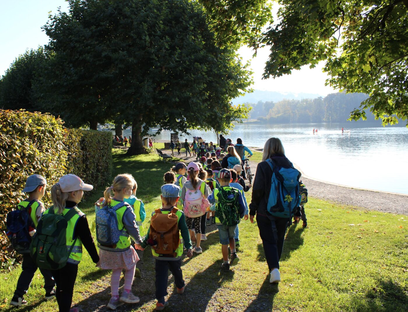 Am Freitagmorgen, kurz nach Schulstart, machten sich 90 Kindergartenkinder und 10 Lehrpersonen auf den Weg zur traditionellen Herbstwanderung. Dieses Jahr war es ein besonderer Anlass: Zum ersten Mal waren gleich fünf Kindergartenklassen gemeinsam unterwegs. Ziel war der Piratenspielplatz in der Badi Sursee.