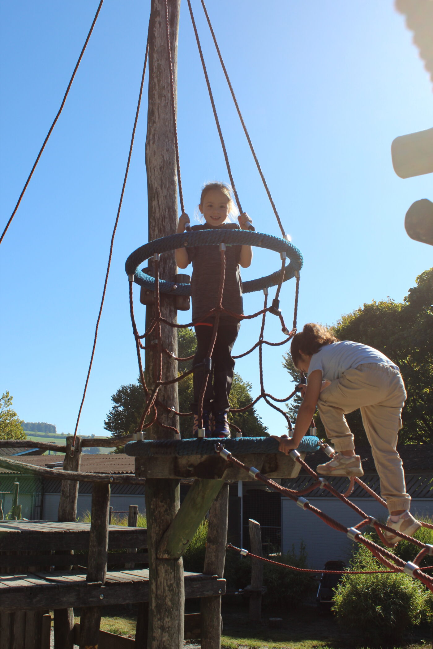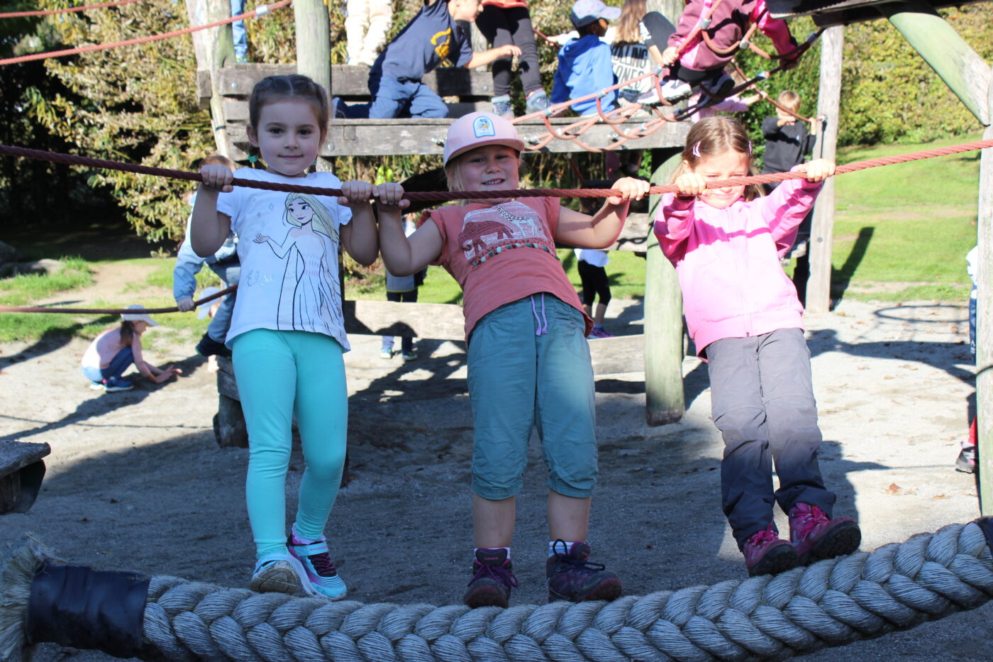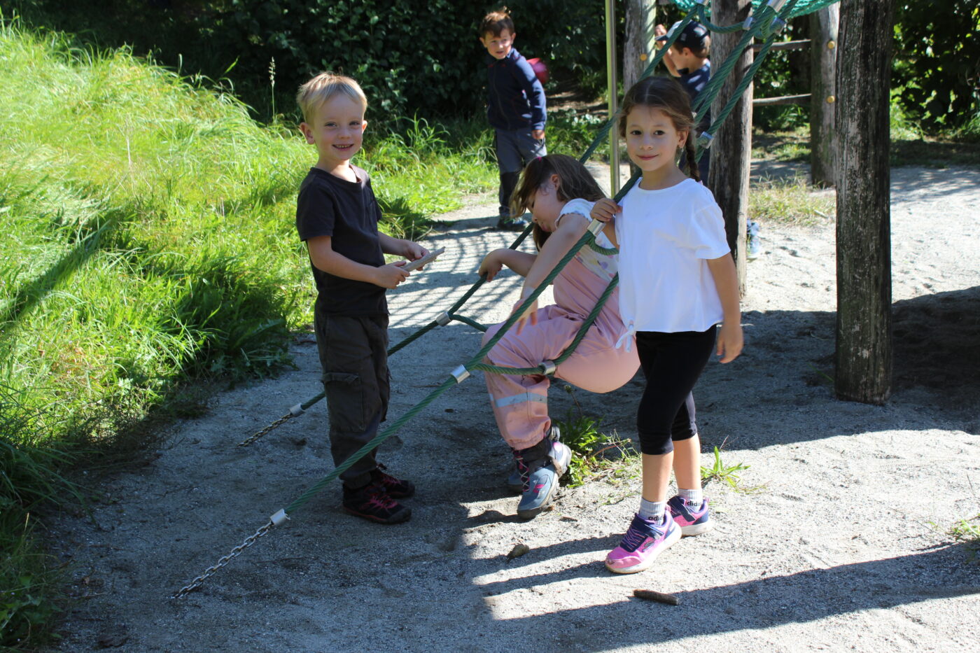 Weil das Herbstwetter so einladend war, wurde die Wanderung kurzerhand vorverschoben. Dank des flexiblen Bademeisters René Bühlmann durften die Kinder den tollen Spielplatz trotz geöffneter Badi einen ganzen Vormittag lang nutzen. Schon bald verwandelten sich die Kinder in richtige kleine Piraten: Sie kletterten über Seile und Leitern, sausten die Rutschbahnen hinunter, gruben im Sand nach Schätzen, schaukelten in der Hängematte und hielten vom grossen Krähennest aus Ausschau nach gegnerischen Piratenschiffen.
