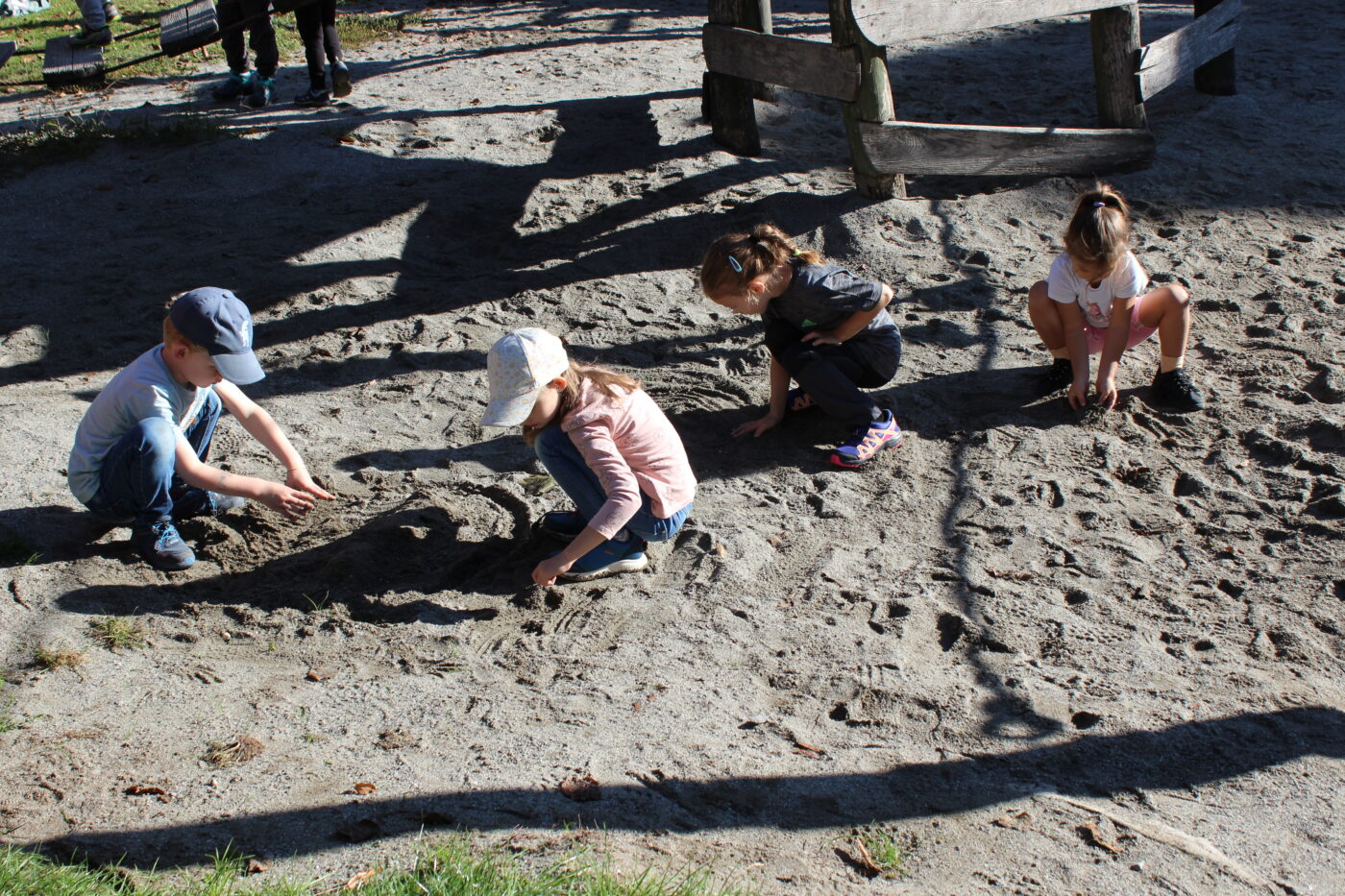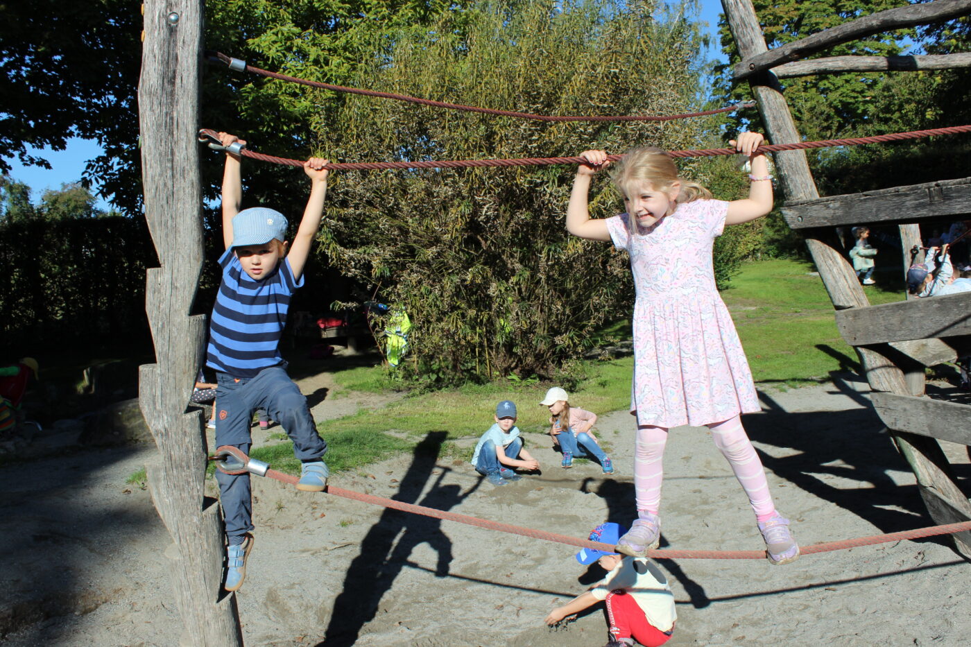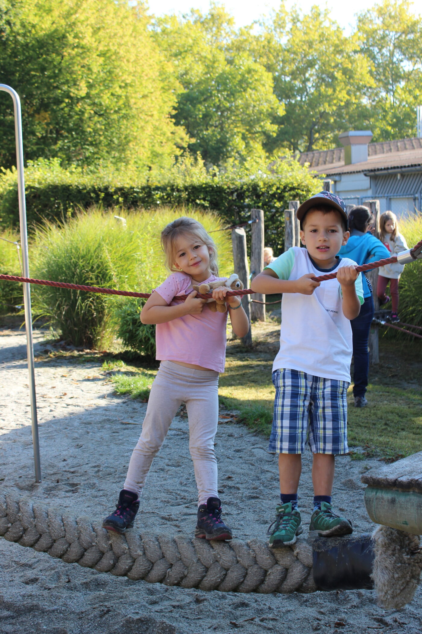 Weil das Herbstwetter so einladend war, wurde die Wanderung kurzerhand vorverschoben. Dank des flexiblen Bademeisters René Bühlmann durften die Kinder den tollen Spielplatz trotz geöffneter Badi einen ganzen Vormittag lang nutzen. Schon bald verwandelten sich die Kinder in richtige kleine Piraten: Sie kletterten über Seile und Leitern, sausten die Rutschbahnen hinunter, gruben im Sand nach Schätzen, schaukelten in der Hängematte und hielten vom grossen Krähennest aus Ausschau nach gegnerischen Piratenschiffen.