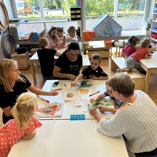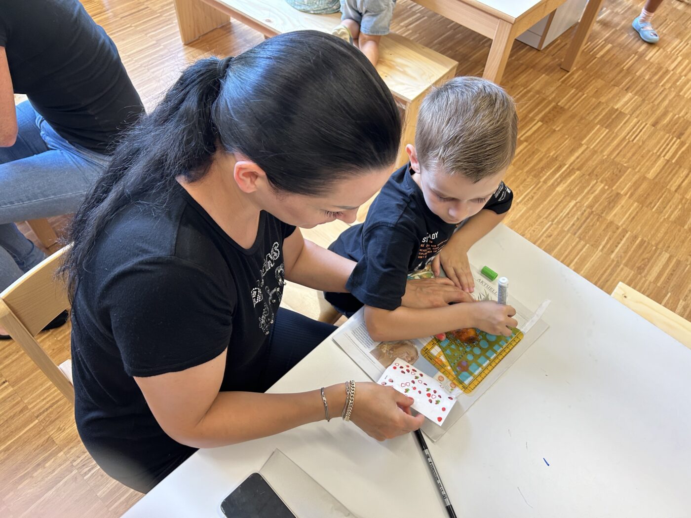 In der Garderobe durften die Kindergartenkinder ihren neuen Platz suchen und anschliessend den Kindergartenraum entdecken. Die Aufregung bei manchen Kindern, Eltern und auch Lehrpersonen war gross, doch legte sich diese bereits nach kurzer Zeit. Schon bald durften die Kinder Mama und Papa «tschüss» sagen und ganz allein im Kindergarten bleiben. Auch dies haben die Kinder schon sehr gut gemacht. Es dauerte nicht lange und der 1. Kindergartentag war geschafft.