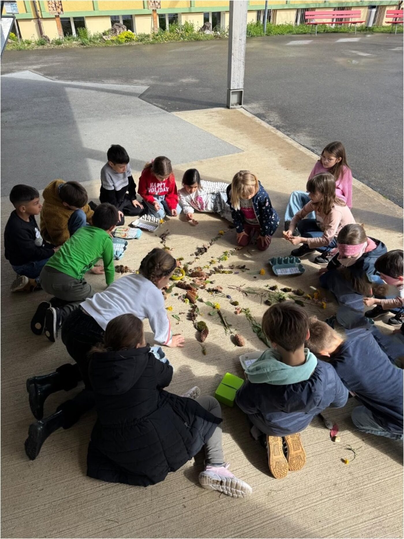 Körperlich konnte man sich in der Turnhalle austoben. Die Geschichte «Das schönste Ei der Welt» wurde erzählt. Pixelbilder galt es richtig auszumalen oder gar einen Roboter so zu programmieren, dass er Eier einsammeln ging. Im Freien konnte man mit gesammelten Naturmaterialien ein Mandala legen. Tolle Unterhaltung boten die Minispiele im 5. Atelier.