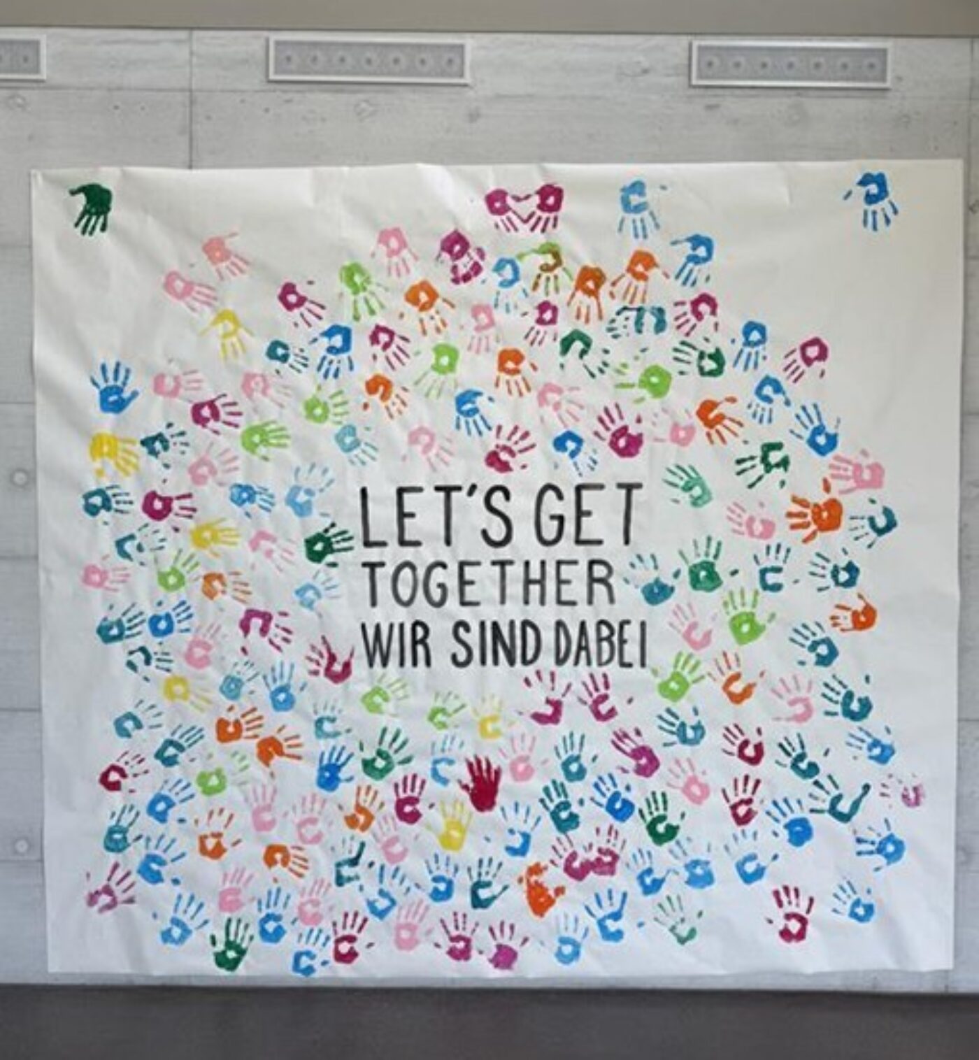 Am Nachmittag erlebte das ganze Schulhaus ZIP einen fröhlichen Spielenachmittag mit sechs Posten. Passend zu unserem Motto «Let’s get together» wurde gemeinsam gespielt, gelacht und das schöne Wetter genossen. Als Erinnerung an diesen Tag wurde ein grosses Plakat gestaltet, auf dem alle Schülerinnen und Schüler rund um das Motto ihre Handabdrücke verewigten. Dieses Kunstwerk schmückt nun den Gang unseres Schulhauses und erinnert uns nicht nur an den gelungenen Start ins neue Schuljahr, sondern auch daran, dass wir unser Motto «Let’s get together» jeden Tag leben wollen.