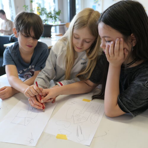 Die 3./4. Klässler verzieren die Gänge des Palasts.