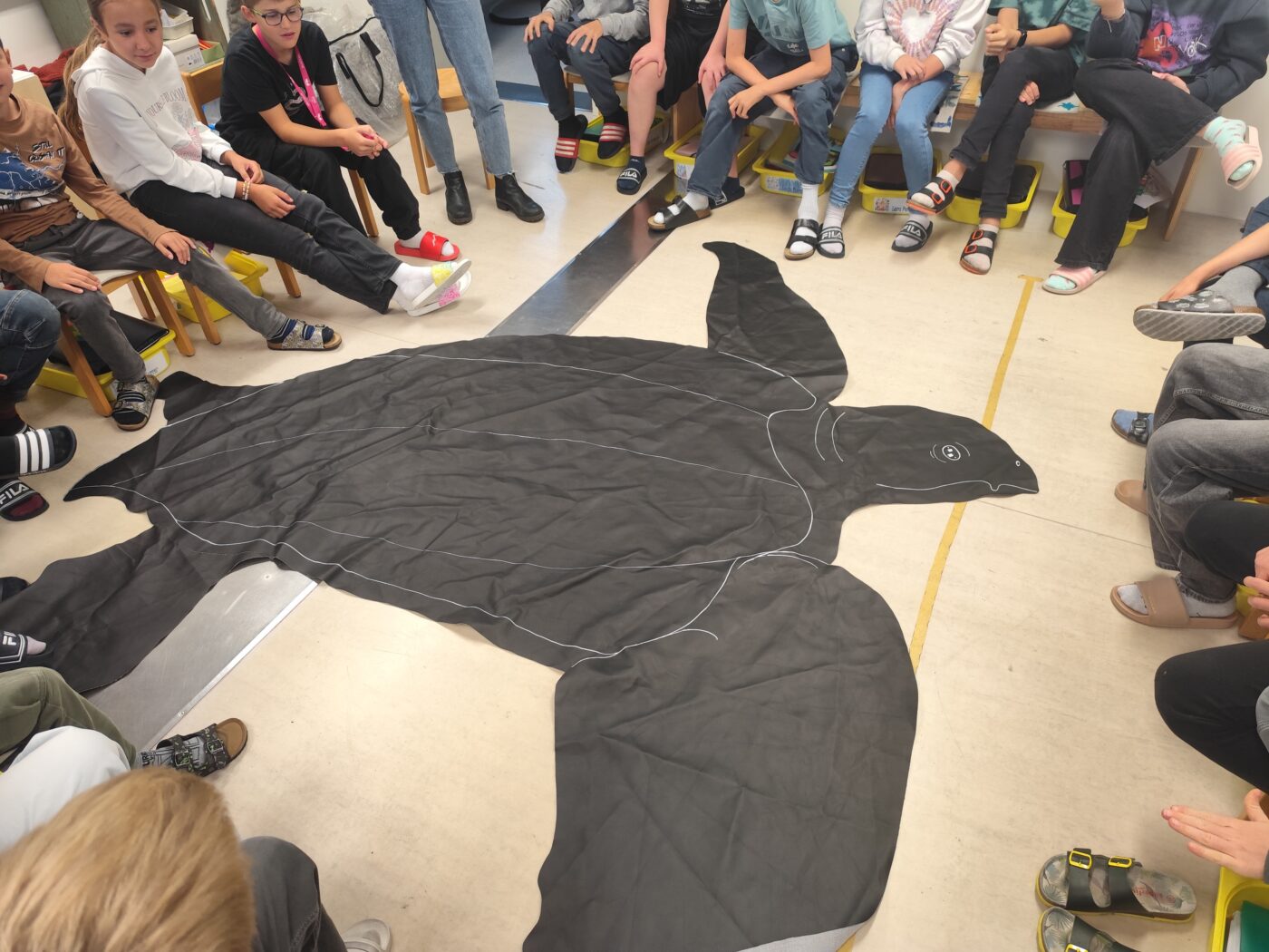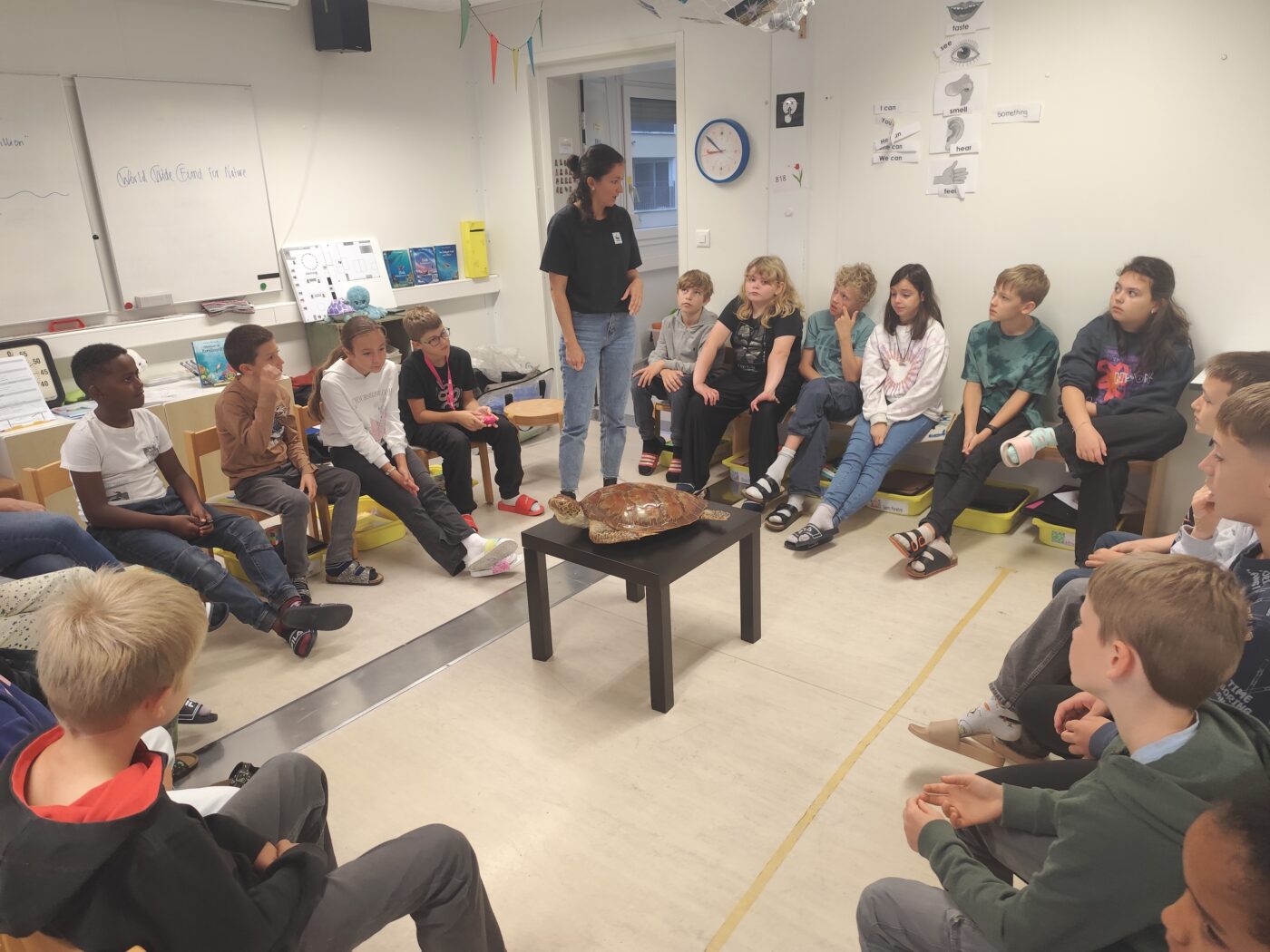 Es wurden detaillierte Modelle von Meeresschildkröten präsentiert, die die verschiedenen Arten, Grössen und ihre anatomischen Besonderheiten verdeutlichten. Der Aufbau und die Funktion des Panzers sowie ihre Nahrung wurden erklärt. Besonders beeindruckend waren die Modelle und der Filmausschnitt von Jungtieren, die ihren Weg zum Meer zurücklegen müssen. Zum Schluss haben wir über die Verschmutzung/Bedrohung im Meer gesprochen und uns Gedanken gemacht, was wir dagegen unternehmen können.