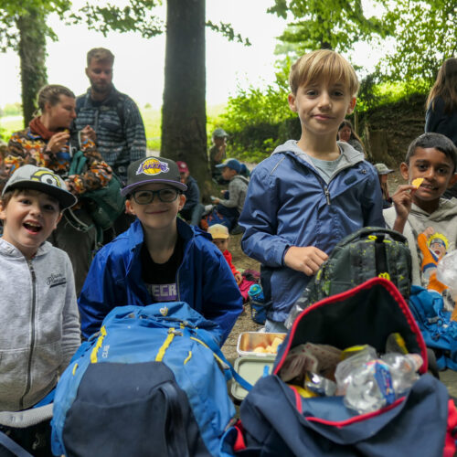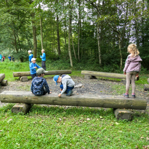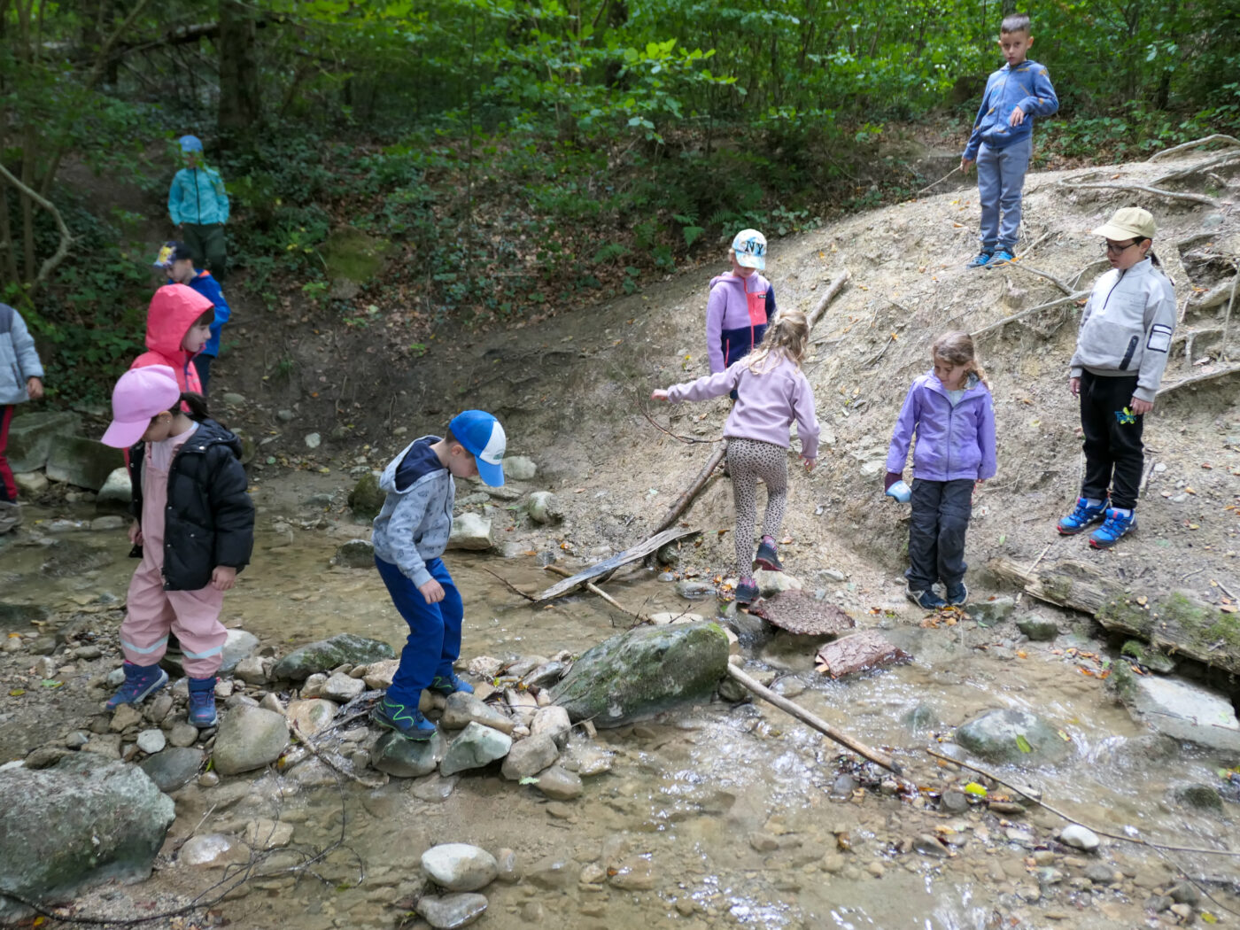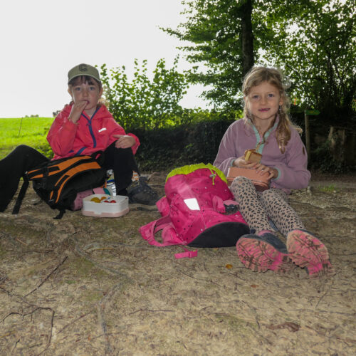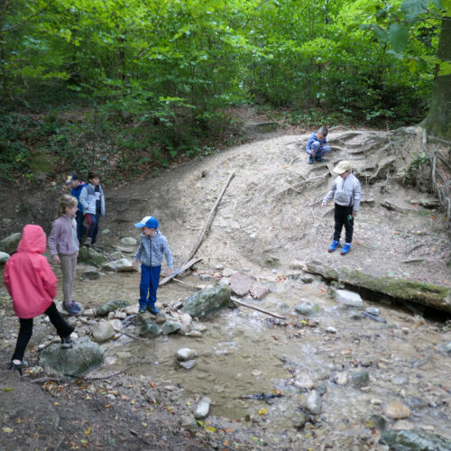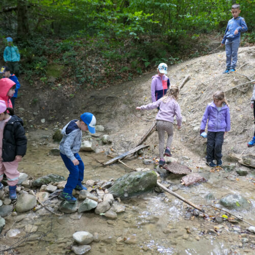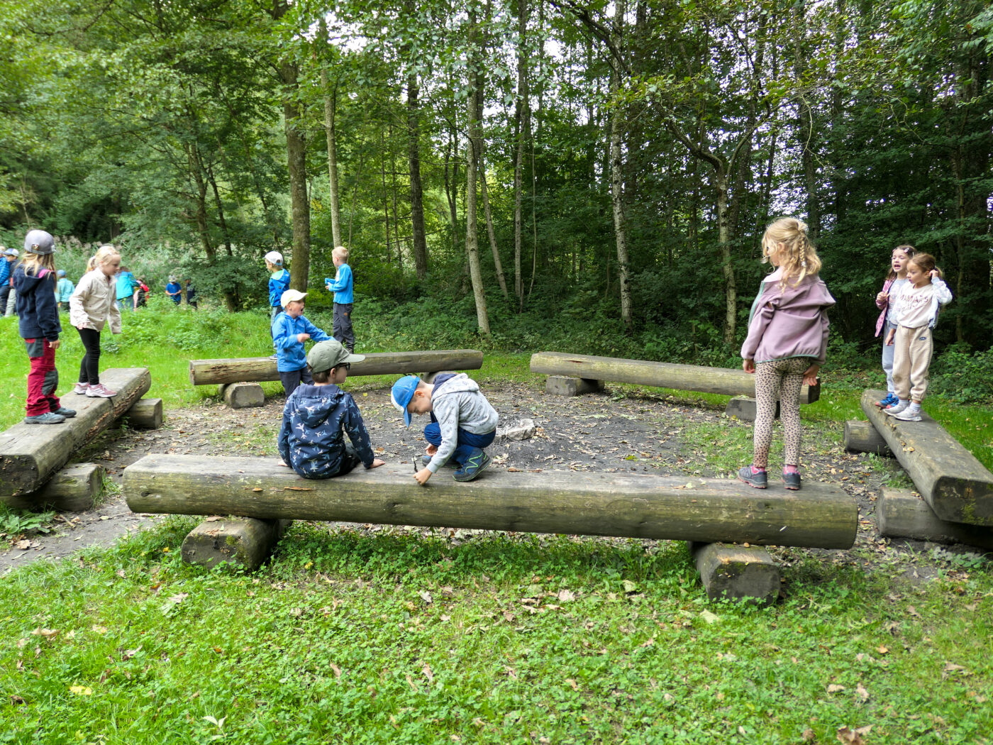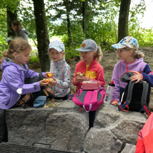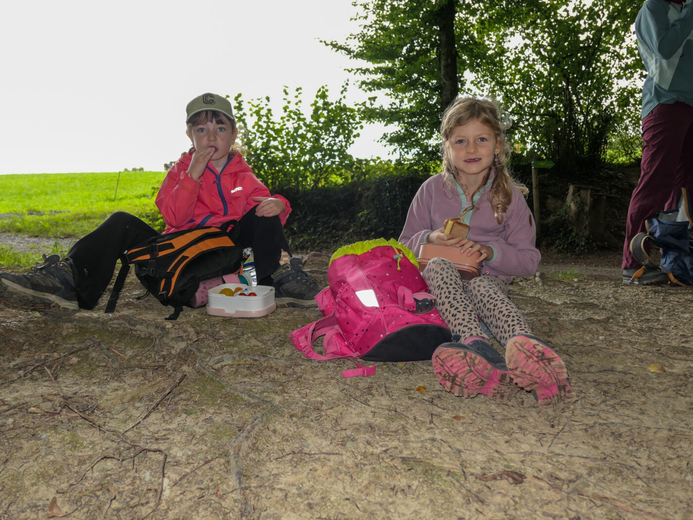 Der Weg führte ab Eich über den Glögglifroschweg und den Römerweg zum ersten Zwischenziel, dem Znüniplatz. Hier konnten sich die Kinder nach dem ersten Teil der Wanderung stärken und am Bach und im Wald spielen.