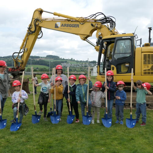Zum Abschluss der Feierlichkeiten durften sich die Schülerinnen und Schüler über ein feines Zvieri freuen – und schließlich setzte Stadträtin Judith Studer persönlich mit einem grossen Bagger das erste Loch für den Neubau. Damit ist der Weg geebnet für ein Schulhaus, das modernen pädagogischen Ansprüchen gerecht wird und den Kindern von St. Martin ein inspirierender Lernort sein wird.