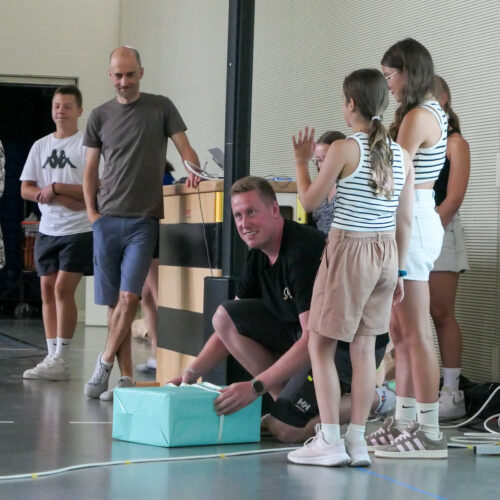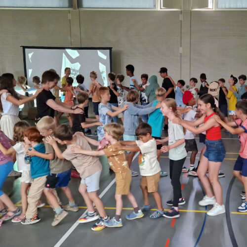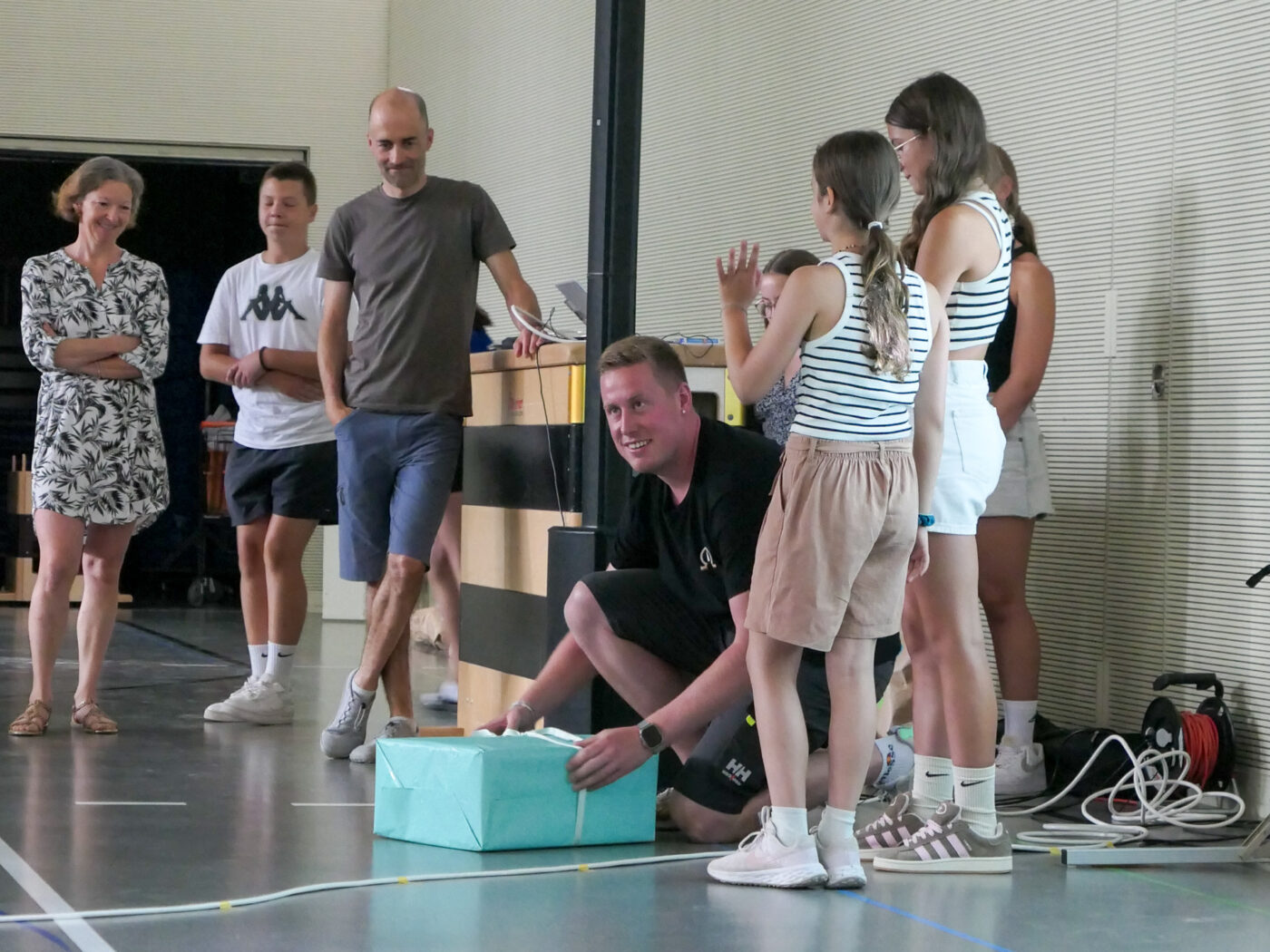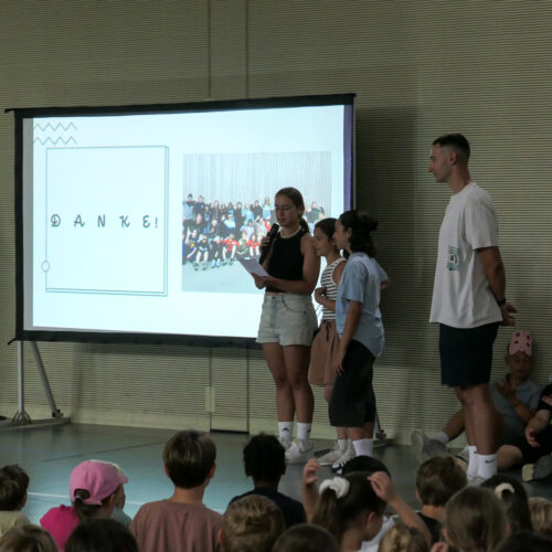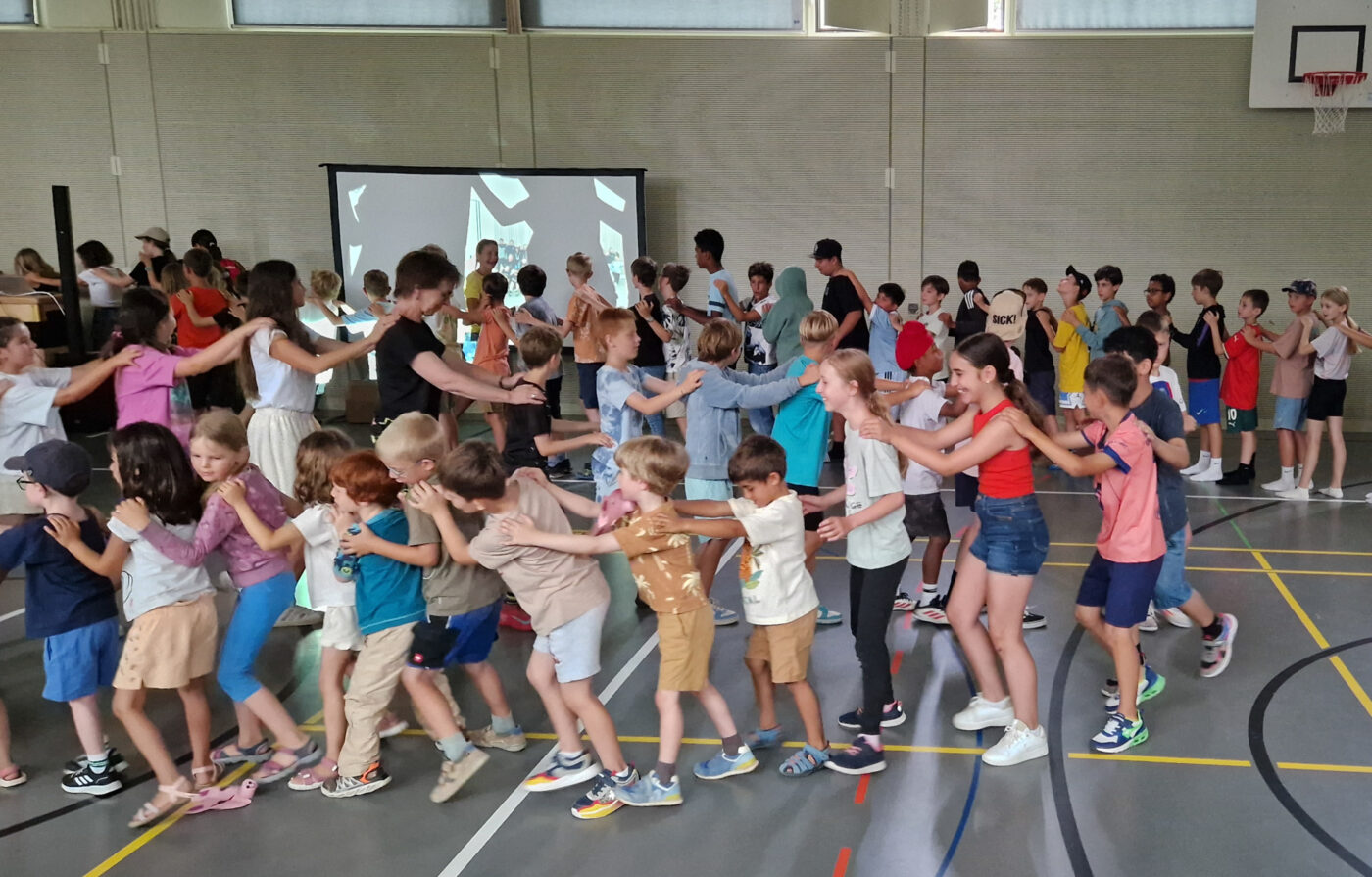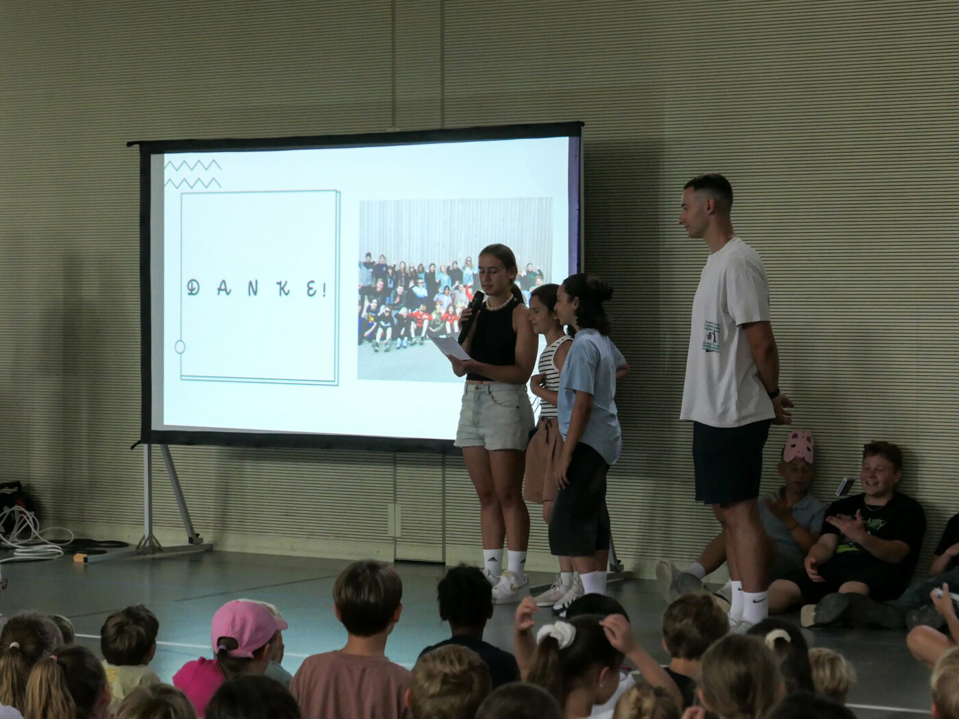 Zum Abschluss des Schuljahres präsentierten uns die beiden 6. Klassen die Highlights ihrer Primarschulzeit und vom Klassenlager. Von den 5. Klässlern bekamen sie ein Zauberkarten-Set mit auf den Weg. An der Feier wurde auch unser Zivi, Darko Mladenovic, verabschiedet. Die beiden Klassenlehrpersonen der 6. Klasse erhielten ein Abschiedsgeschenk von ihren Klassen, und auch der Schulhausabwart Lukas Furrer ging nicht leer aus. Am Ende der Feier verliessen alle die Turnhalle in einer Polonaise.