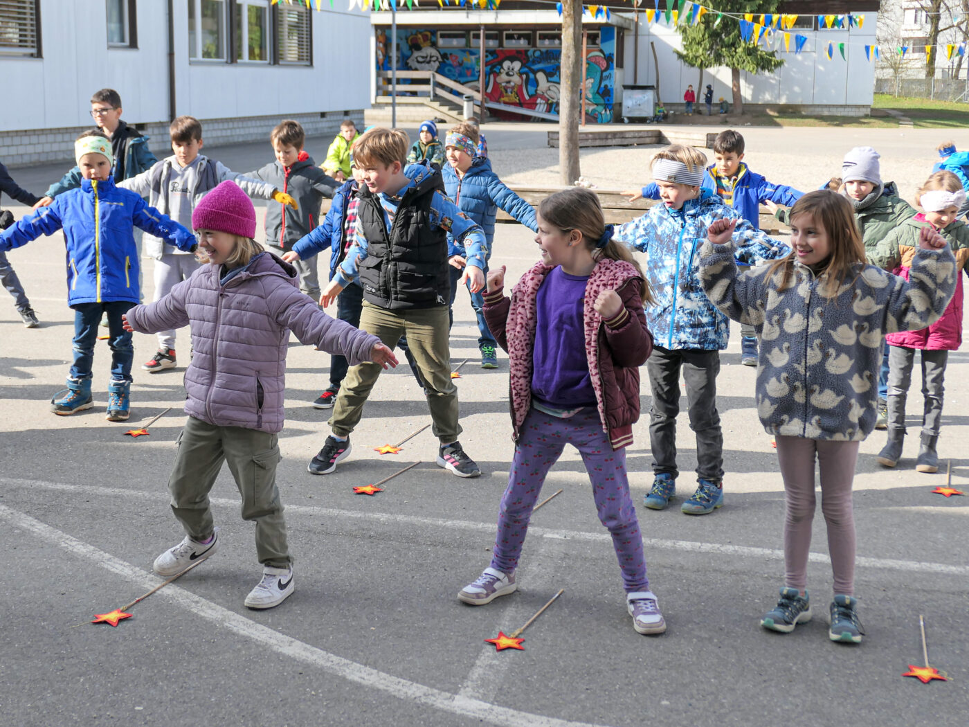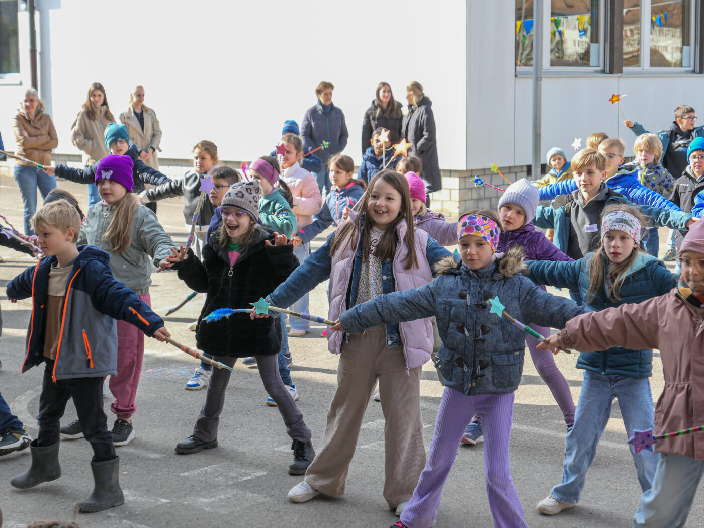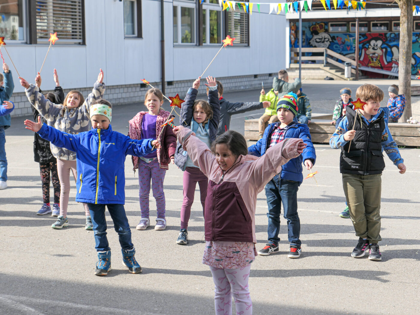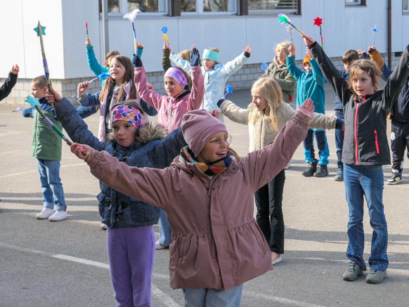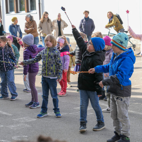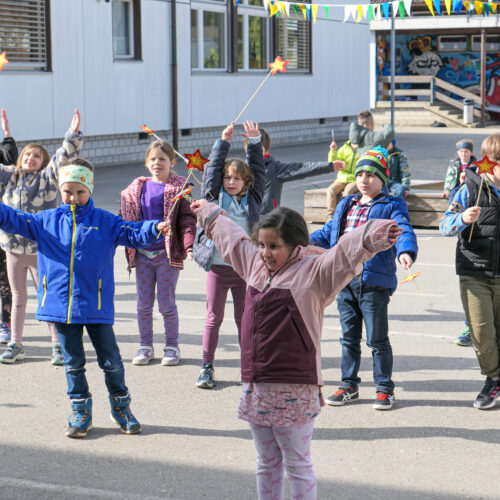 Im Fach Musik und Bewegung haben alle Klassen der Unterstufe einen magischen Tanz zum Jahresmotto einstudiert. Dazu wurden auch originelle Zauberstäbe gebastelt, welche beim Zaubertanz eingesetzt werden konnten.