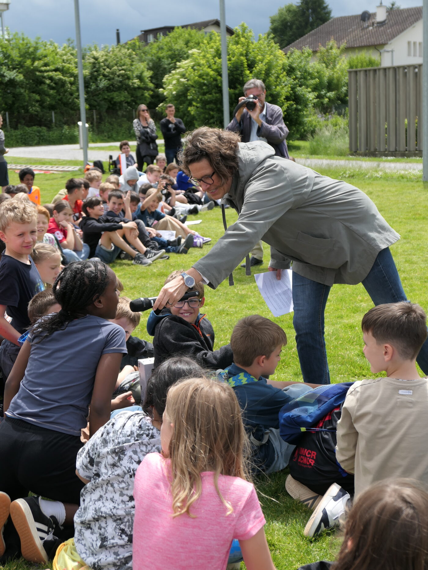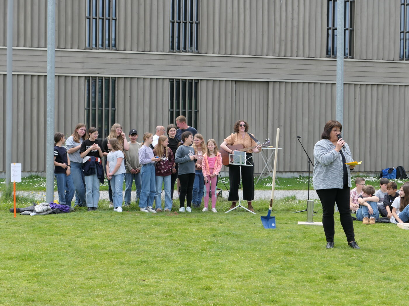 In ihren Ansprachen betonten die Rednerinnen und Redner die Bedeutung eines modernen Schulgebäudes für die Bildungslandschaft und die kommenden Generationen. Besonders stimmungsvoll gestaltete sich der Beitrag von Judith Studer, die die anwesenden Kinder aktiv in die Feier einbezog. Gemeinsam wurde das Geheimnis eines dicken Buches über den Schulhausbau gelüftet – darin fanden sich Begriffe wie Schulzimmer, Möblierung, WC’s, Strom und Wasser – alles Dinge, die für einen reibungslosen Schulbetrieb unerlässlich sind.