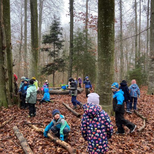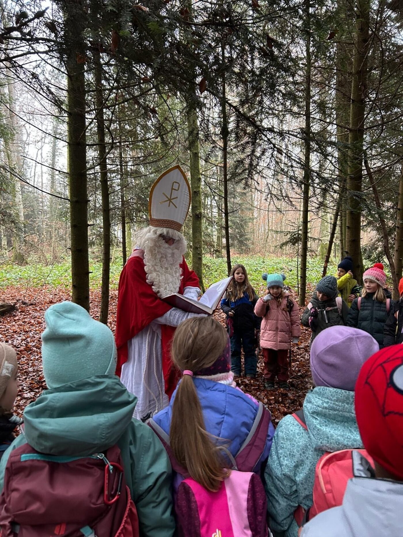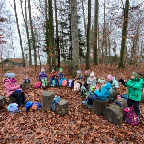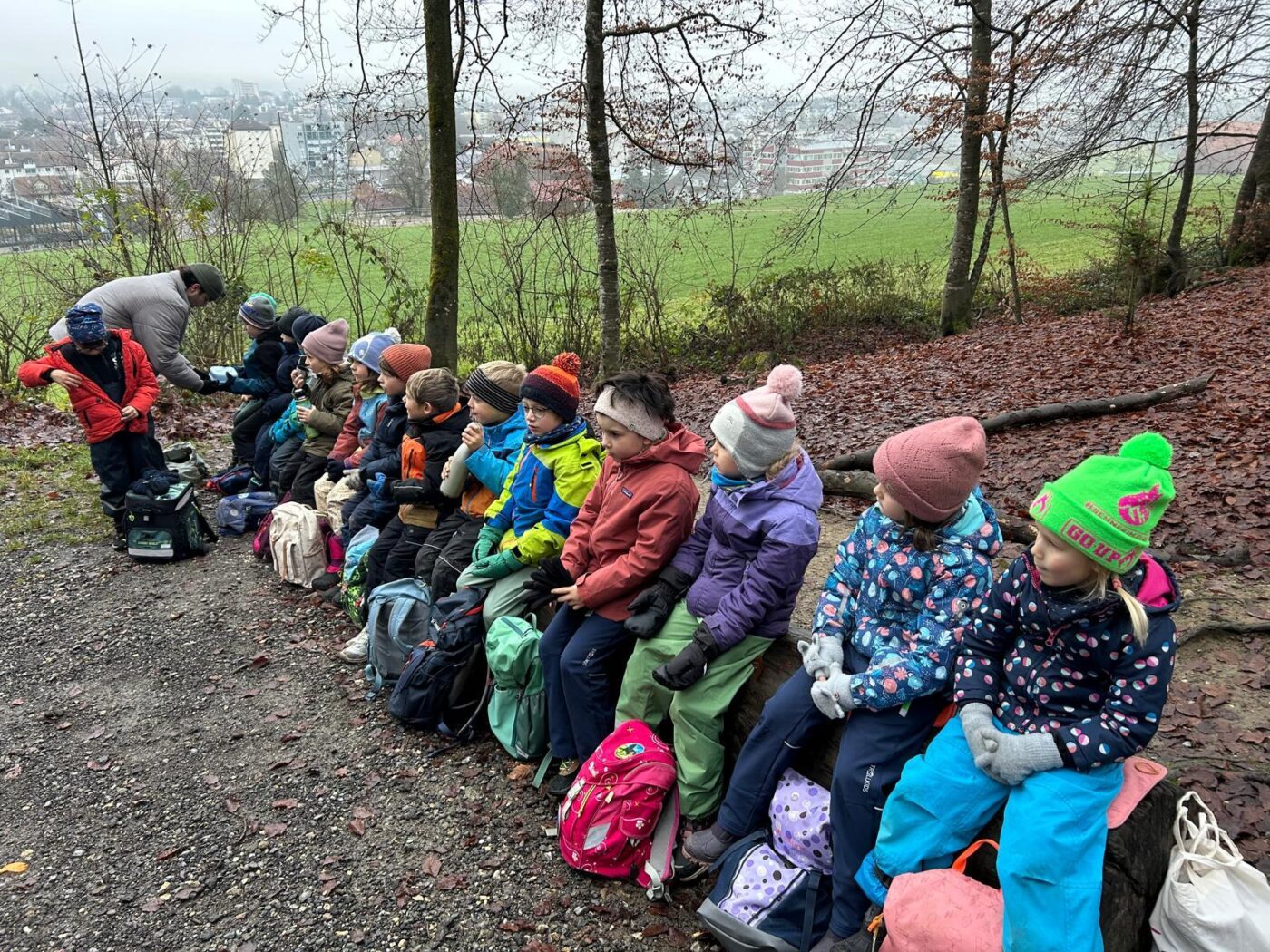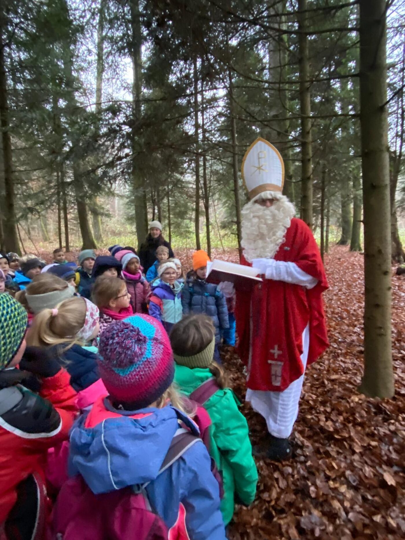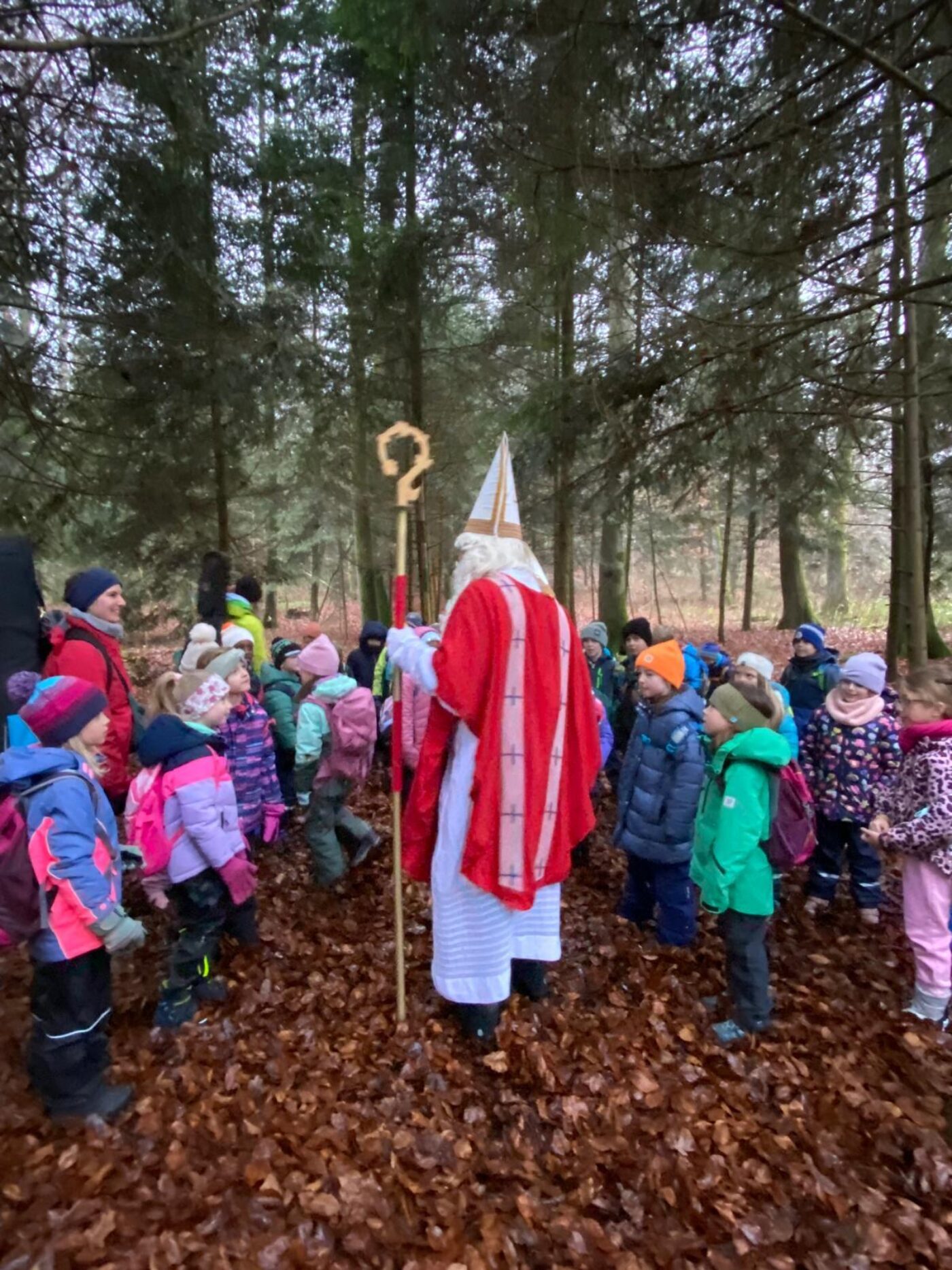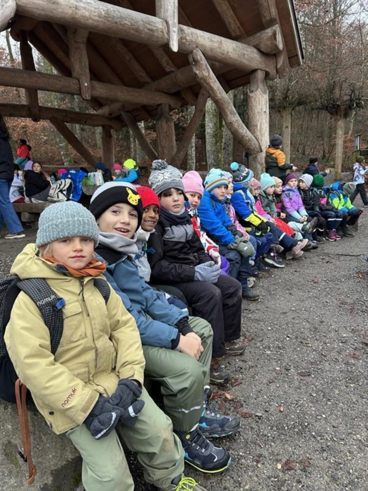 Mit grosser Aufregung und Vorfreude machten sich die 1./2.-Klässler auf den Weg in den Wald, um den Samichlaus zu treffen. Im Haselwartwald sangen sie zunächst ein Weihnachtslied. Danach durfte jeweils eine Gruppe von Kindern zum Samichlaus, der ihnen eine stimmungsvolle Geschichte vorlas. Währenddessen genossen die anderen Kinder ihr Znüni und spielten im Wald, bevor auch sie den Samichlaus besuchen konnten.